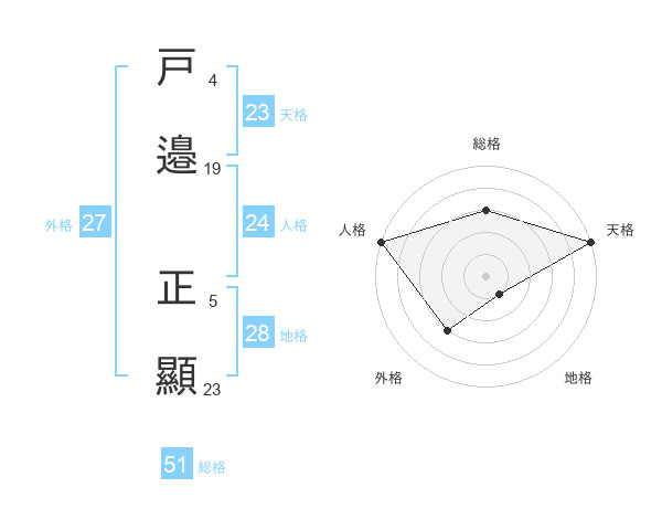 戸邉 正顯さんの総格は51画の3点!