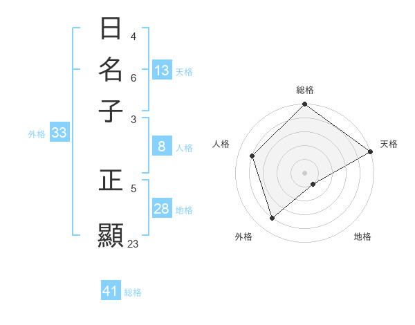 日名子 正顯さんの総格は41画の5点!