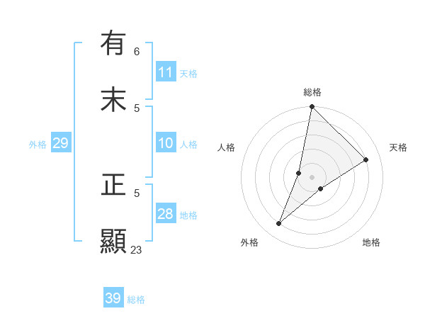 有末 正顯さんの総格は39画の5点!