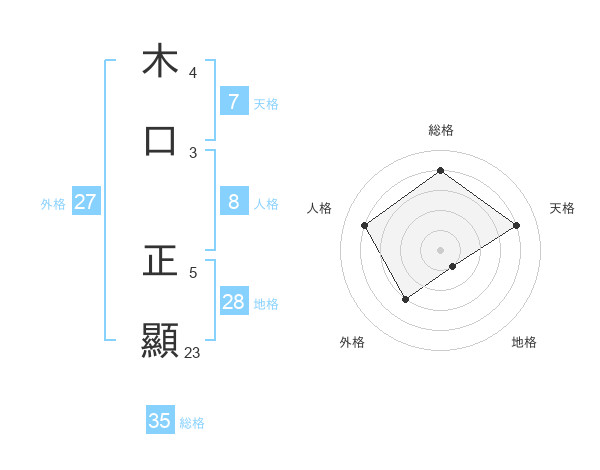 木口 正顯さんの総格は35画の4点!