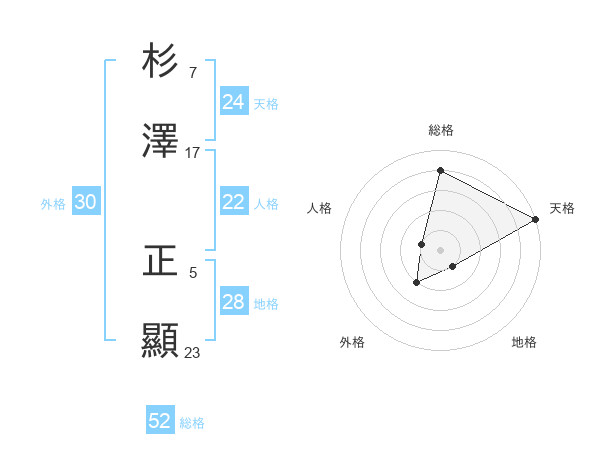 杉澤 正顯さんの総格は52画の4点!