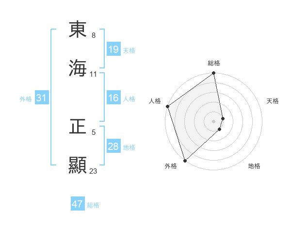 東海 正顯さんの総格は47画の5点!