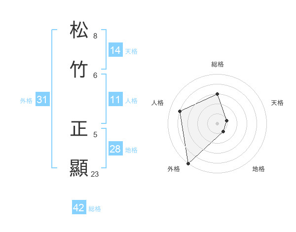 松竹 正顯さんの外格は31画の5点!