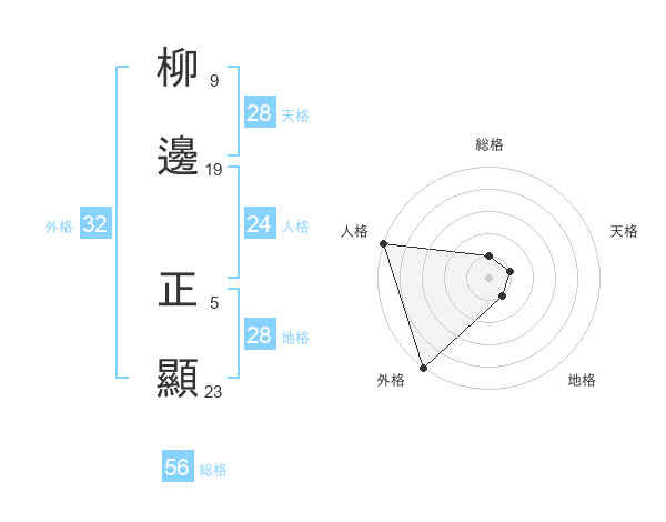 柳邊 正顯さんの外格は32画の5点!