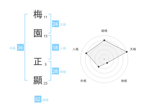 梅園 正顯さんの天格は24画の5点!