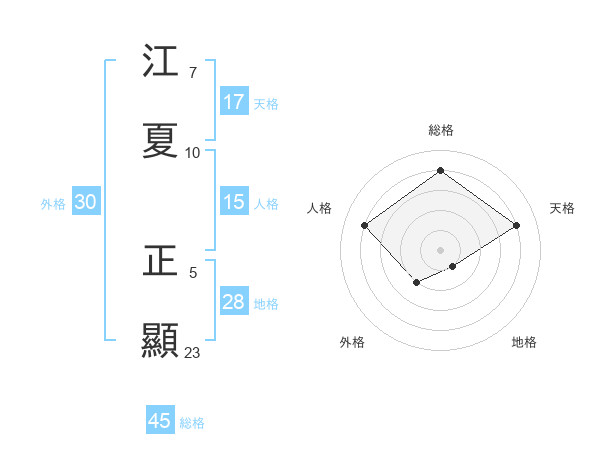 江夏 正顯さんの天格は17画の4点!