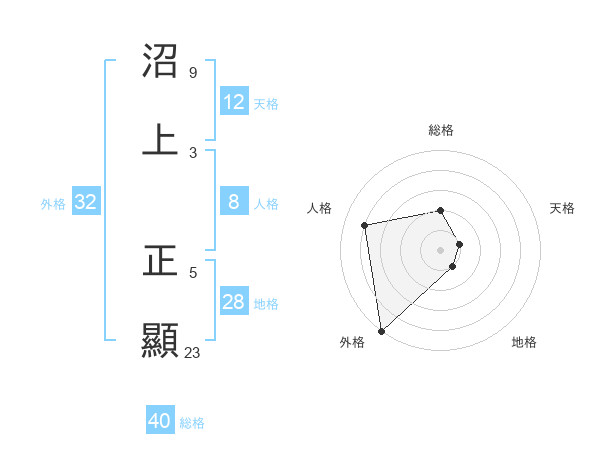 沼上 正顯さんの天格は12画の1点!