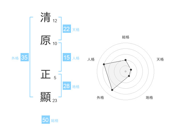 清原 正顯さんの総格は50画の2点!