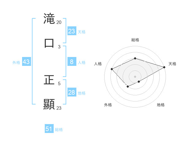 滝口 正顯さんの天格は23画の5点!