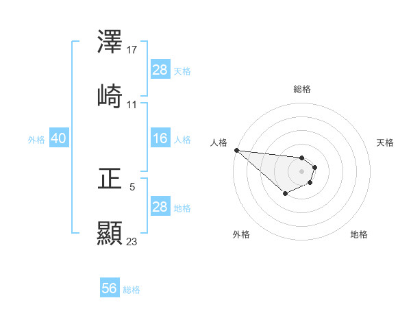 澤崎 正顯さんの天格は28画の1点!