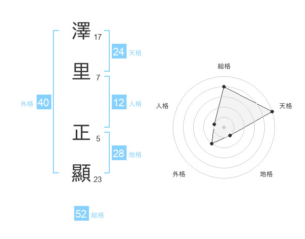澤里 正顯さんを姓名の画数から五運を鑑定