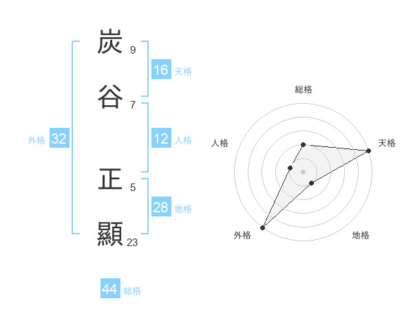 炭谷 正顯さんの天格は16画の5点!