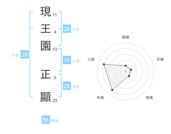 現王園 正顯さんを姓名の画数から五運を鑑定