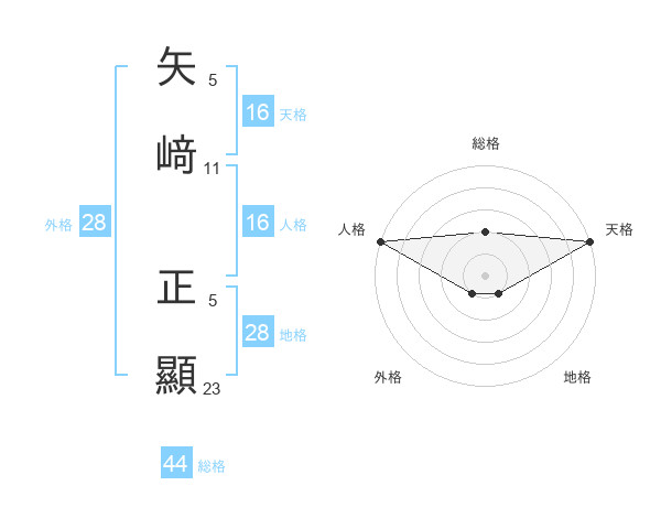 矢﨑 正顯さんの天格は16画の5点!