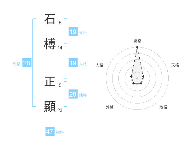 石榑 正顯さんの総格は47画の5点!