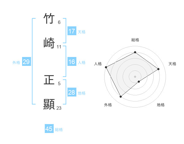 竹崎 正顯さんの総格は45画の4点!