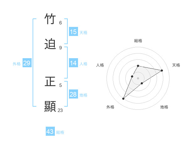 竹迫 正顯さんを姓名の画数から五運を鑑定