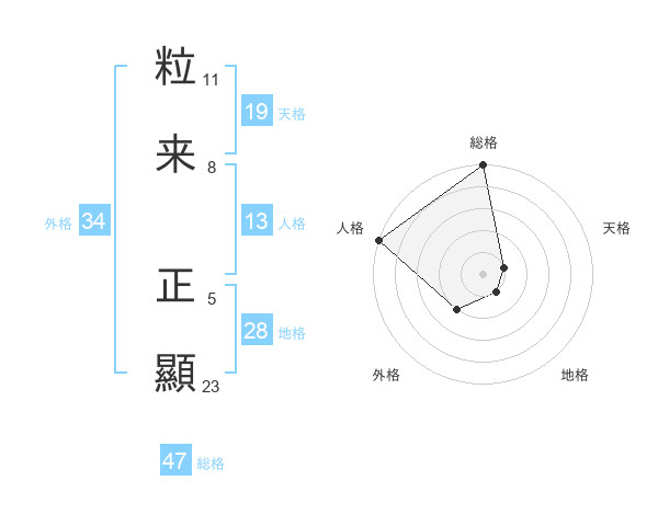 粒来 正顯さんの総格は47画の5点!