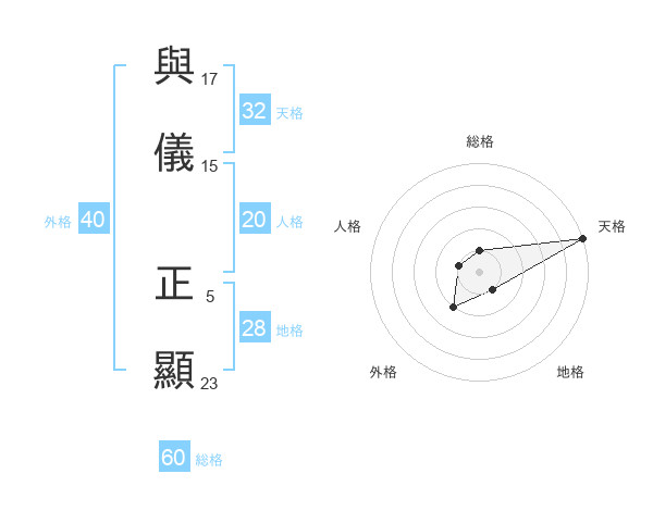 與儀 正顯さんの天格は32画の5点!