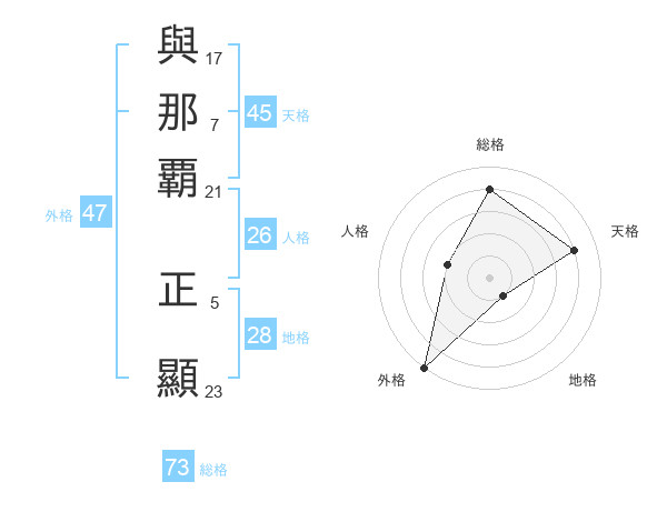 與那覇 正顯さんの総格は73画の4点!