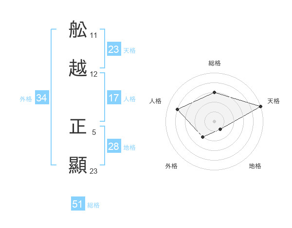 舩越 正顯さんの天格は23画の5点!