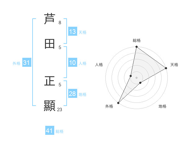 芦田 正顯さんを姓名の画数から五運を鑑定