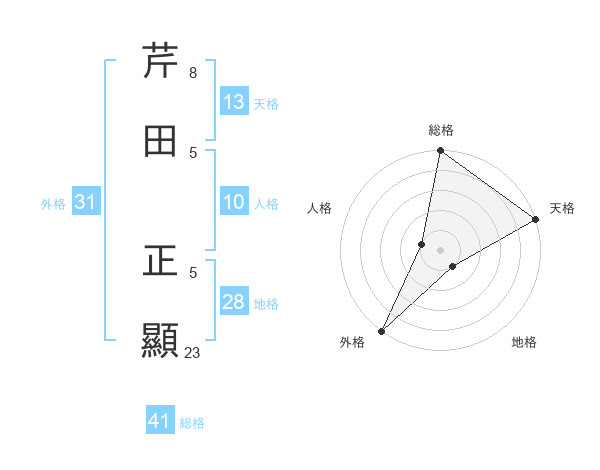 芹田 正顯さんを姓名の画数から五運を鑑定