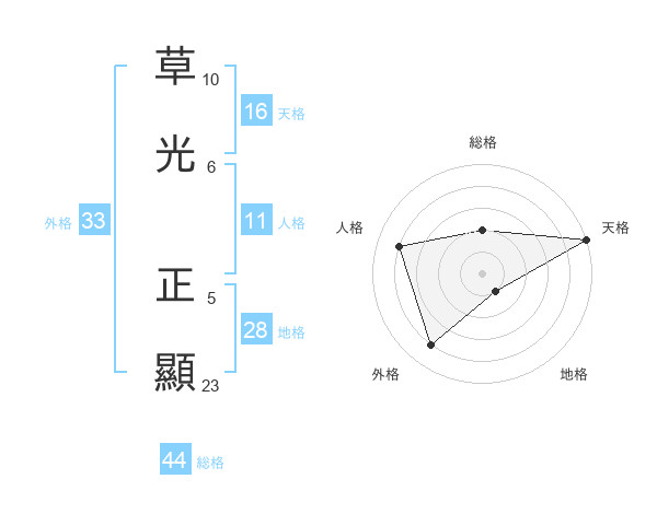 草光 正顯さんの総格は44画の2点!