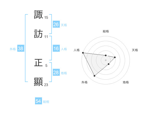 諏訪 正顯さんの外格は38画の4点!