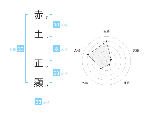 赤土 正顯さんの総格は38画の4点!