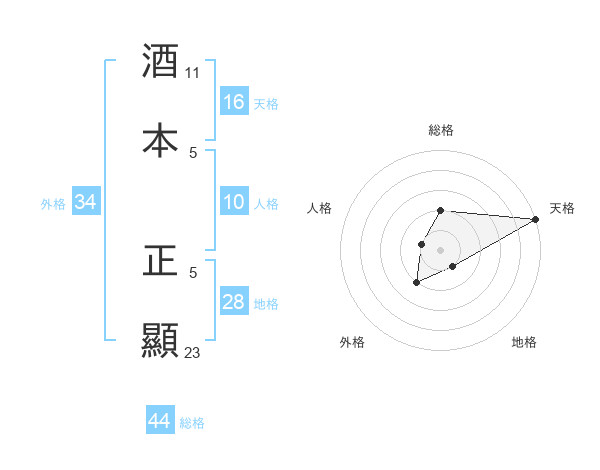 酒本 正顯さんの天格は16画の5点!