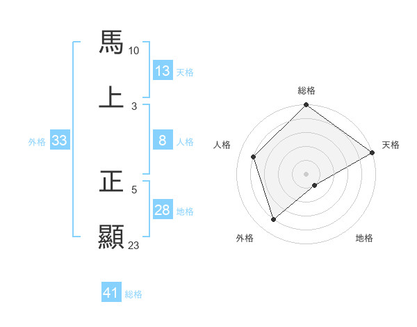 馬上 正顯さんの総格は41画の5点!