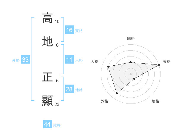 高地 正顯さんの天格は16画の5点!