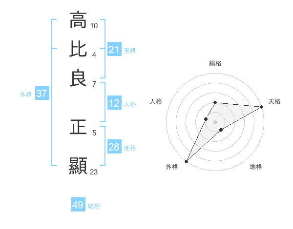 高比良 正顯さんの天格は21画の5点!