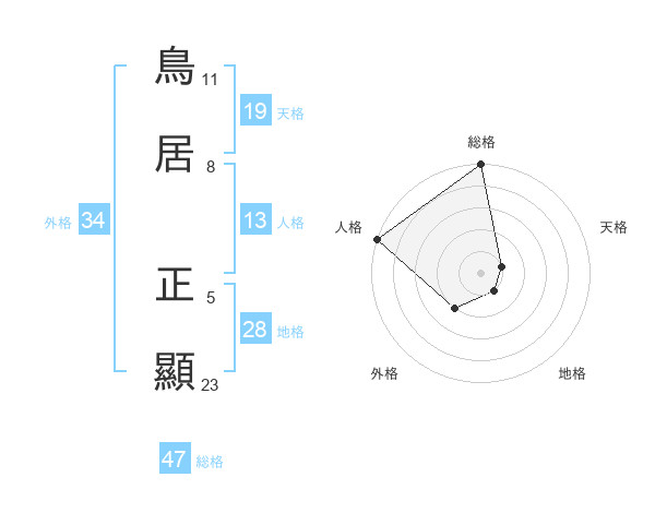 鳥居 正顯さんを姓名の画数から五運を鑑定