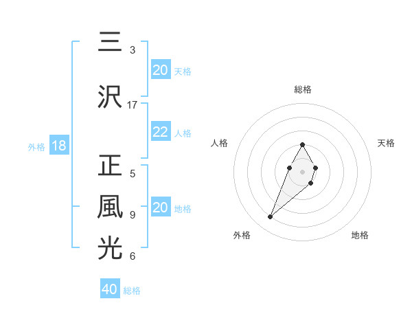 三沢 正風光さんを姓名の画数から五運を鑑定