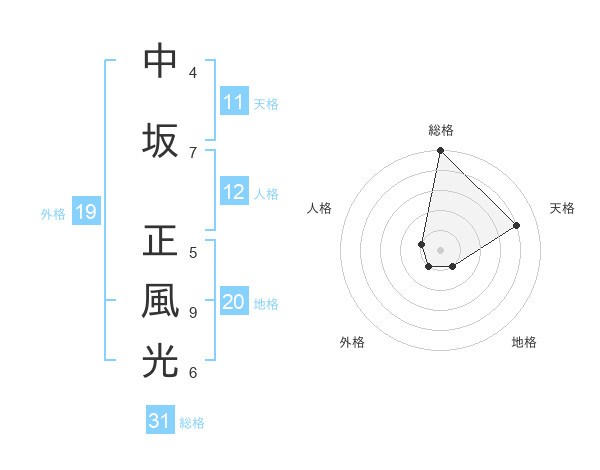 中坂 正風光さんを姓名の画数から五運を鑑定