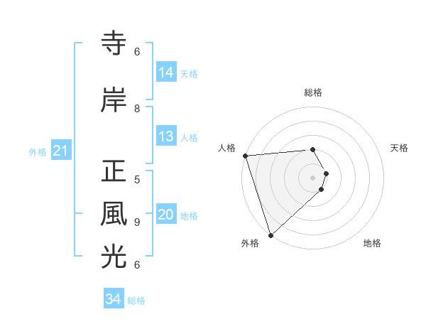 寺岸 正風光さんの総格は34画の2点!