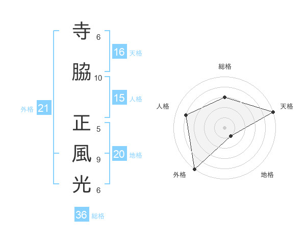 寺脇 正風光さんの天格は16画の5点!