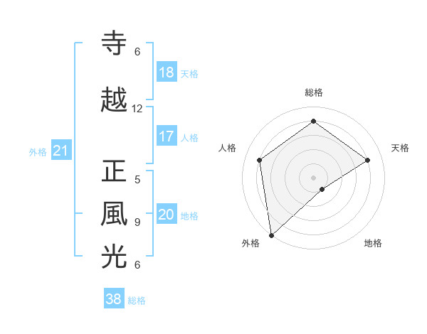 寺越 正風光さんを姓名の画数から五運を鑑定