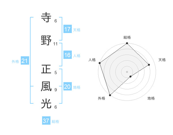 寺野 正風光さんの総格は37画の5点!
