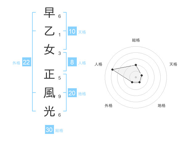 早乙女 正風光さんの総格は30画の2点!