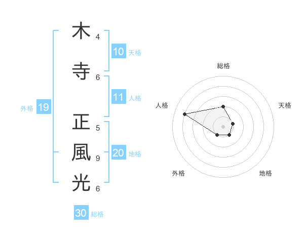 木寺 正風光さんを姓名の画数から五運を鑑定