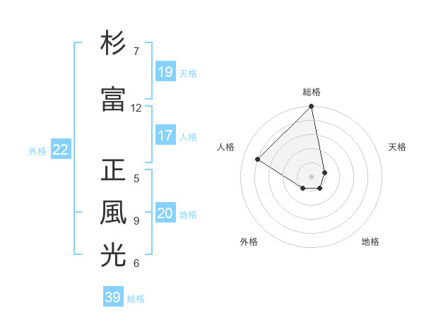 杉富 正風光さんを姓名の画数から五運を鑑定