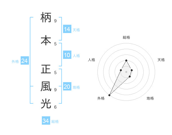柄本 正風光さんを姓名の画数から五運を鑑定