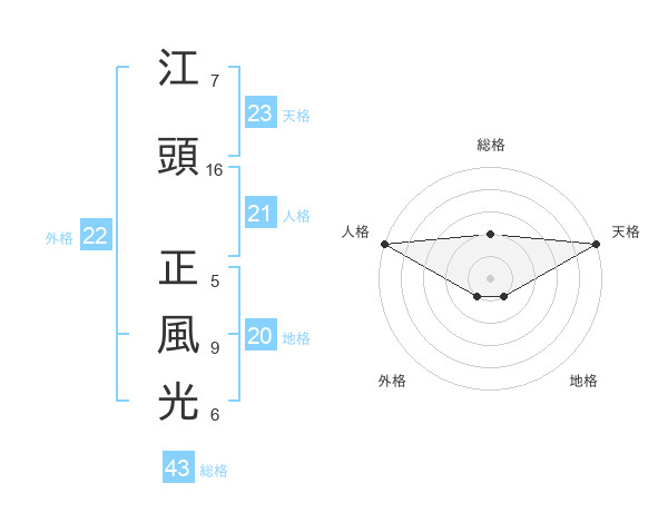 江頭 正風光さんの天格は23画の5点!