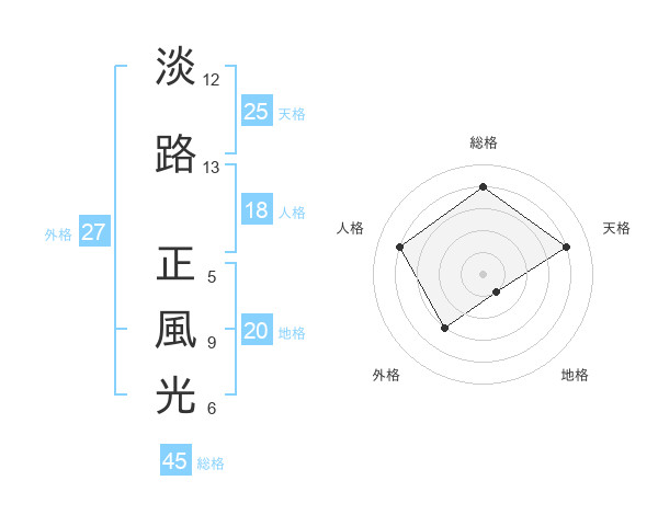 淡路 正風光さんを姓名の画数から五運を鑑定