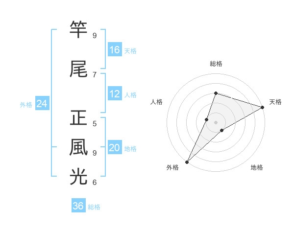 竿尾 正風光さんの外格は24画の5点!