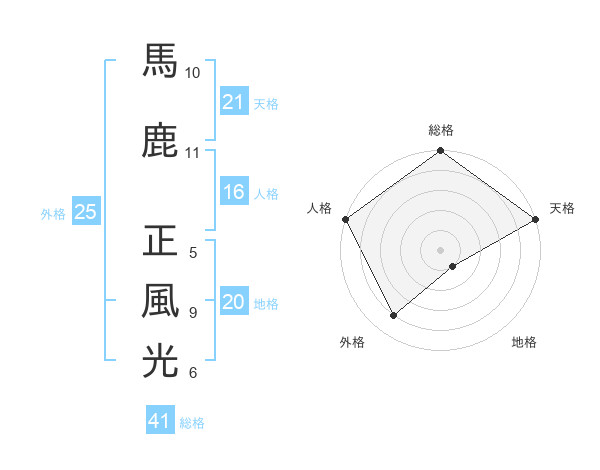 馬鹿 正風光さんを姓名の画数から五運を鑑定
