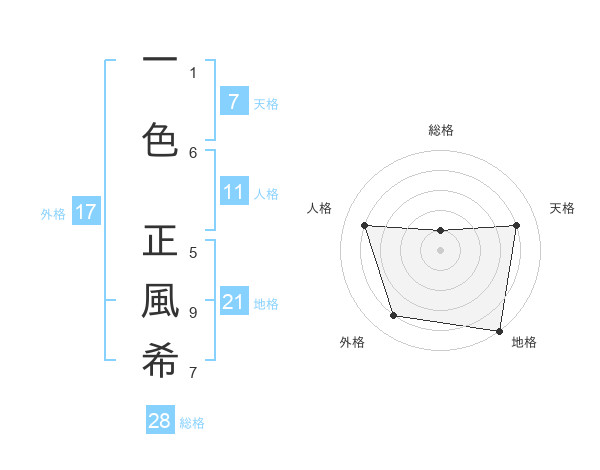 一色 正風希さんの地格は21画の5点!